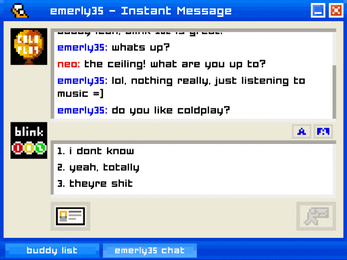 Emily is Away is an interactive story set in a retro chat-client. Create a screenname and choose your path through the branching narrative.